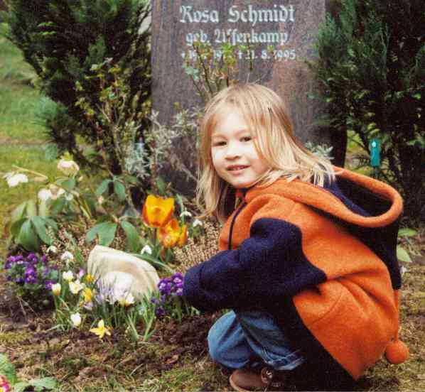 zusammen mit ihrer Urgroßmutter Rosa in einem Grabplatz. |